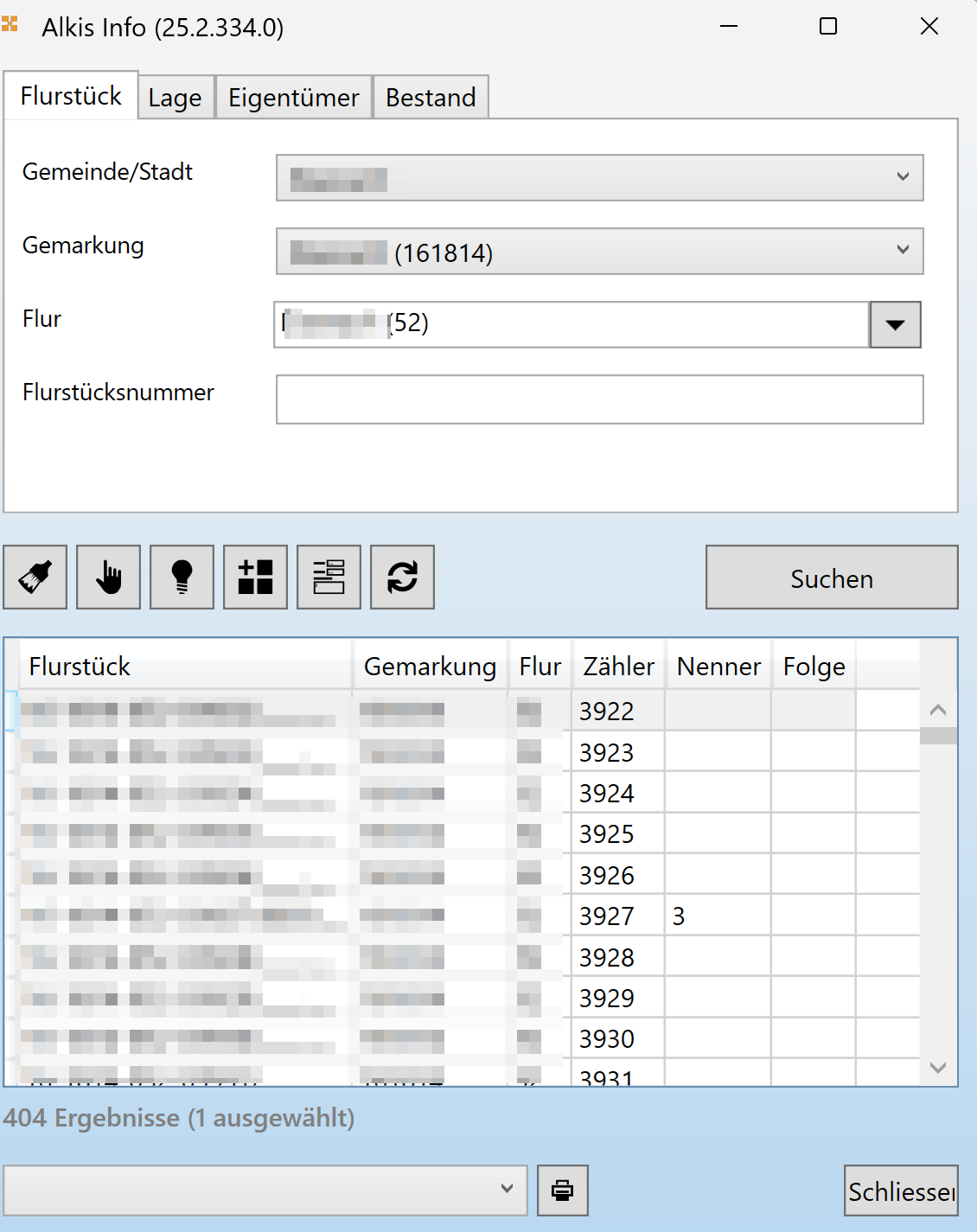 Über den Aufruf der ALKIS Auskunft kann auf die Flurstücke zugegriffen werden.