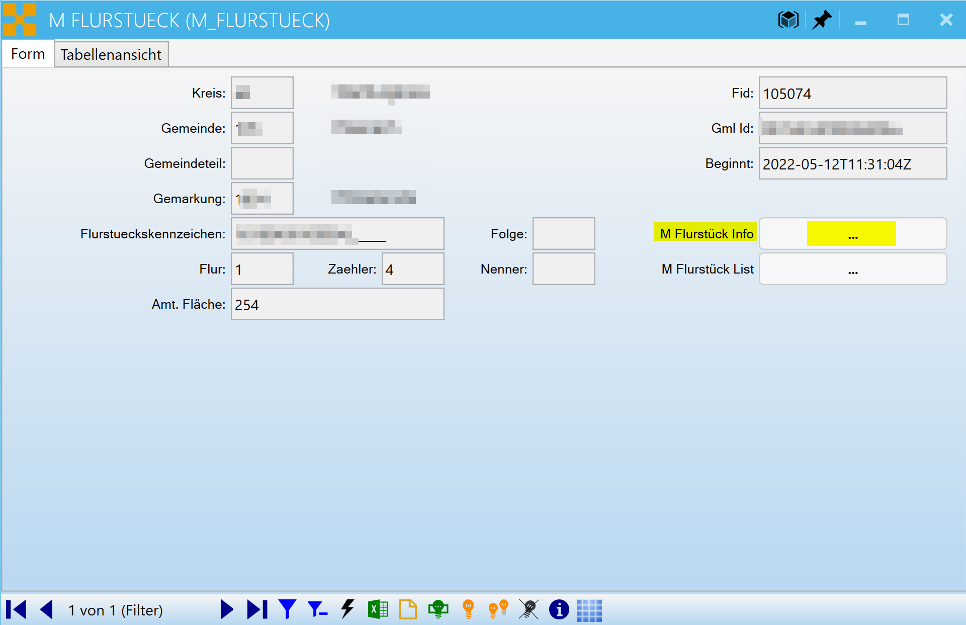 Über den Verweis M Flurstück info können anschließend weitere Details aus der Tabelle M_FLURSTUECK_INFO abgerufen werden.
