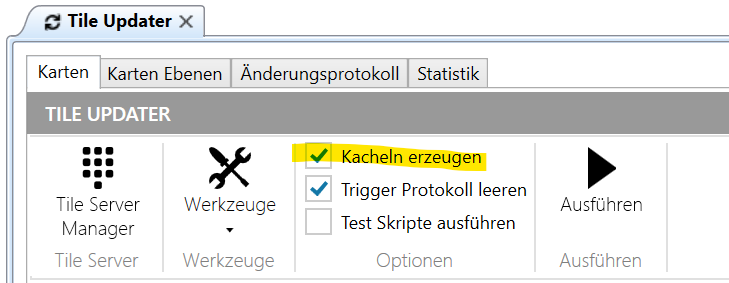 Die aufgesetzten Scripts können optional auch mit dem Ausführen des Tile Updaters ausgeführt werden.