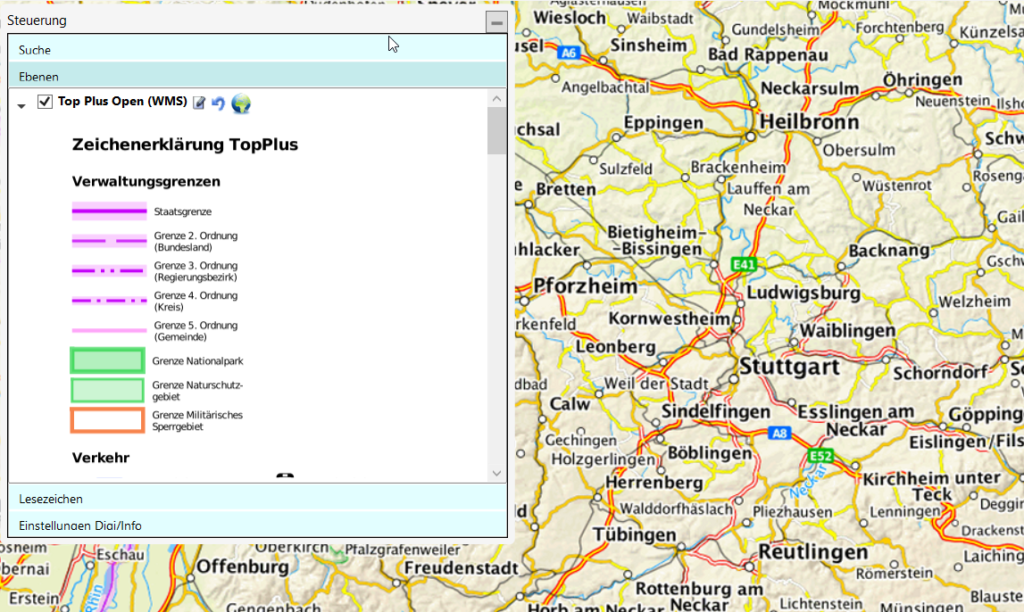 Bei Karten/Layer vom Typ WMS kann optional eine Legende angezeigt werden.