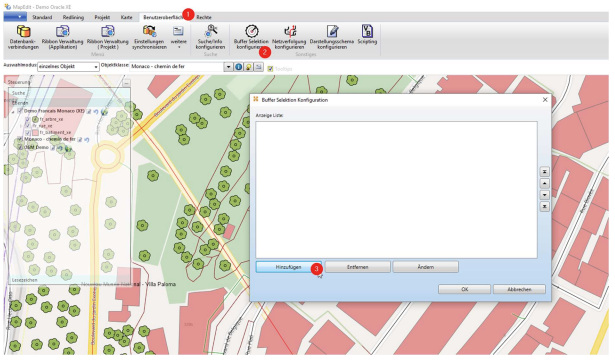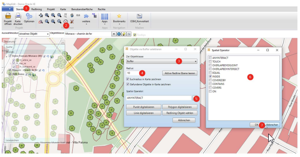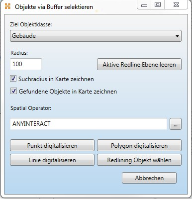 Dem Anwender stehen in MapEdit Desktop nur die hier gemachten Einträge über den Befehl Objekte mittels Buffer selektieren zur Verfügung.