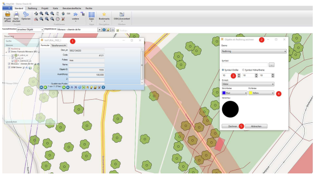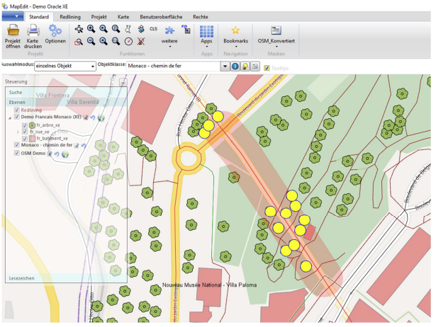 Optional können die ermittelten Bäume noch per Redlining in der Karte andersfarbig dargestellt werden.