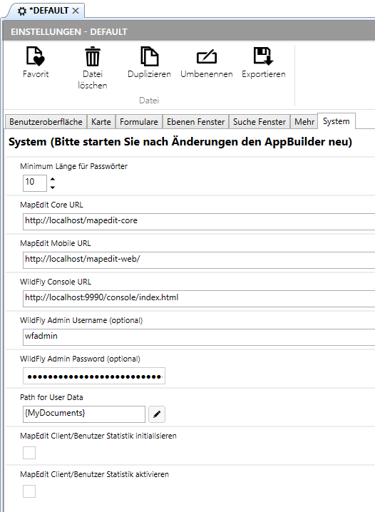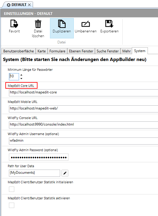 Starten Sie nach dem ändern der Einstellungen immer den AppBuilder neu, anderenfalls haben die Einstellungen keine Wirkung.