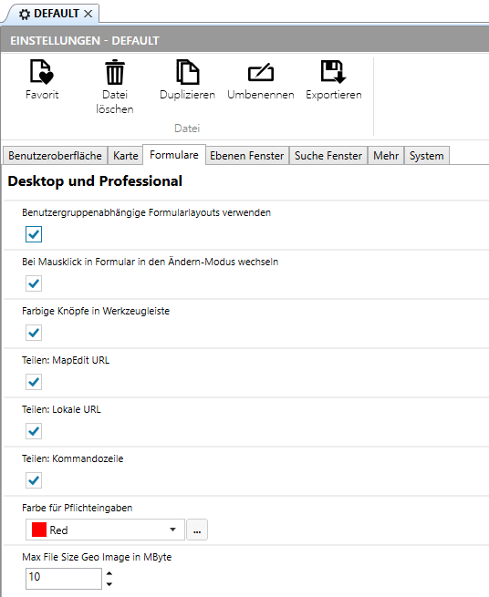 Diese Einstellung sollte das Editieren in MapEdit Professional gesetzt werden, denn bei der Erfassung geht es immer um das Bearbeiten von den Sachdaten und dies erleichtert das Editieren auf den Formularen. Wenn diese Einstellung jedoch für MapEdit Desktop nicht gewünscht ist (falls es MapEdit Desktop Anwender gibt, die im Desktop editieren dürfen), dann müssen die Einstellungen einfach dupliziert werden und dem jeweiligen Projekt zugewiesen werden: einmal den Desktop Projekt ohne diese Option und einmal dem Professional Projekt mit der Option.