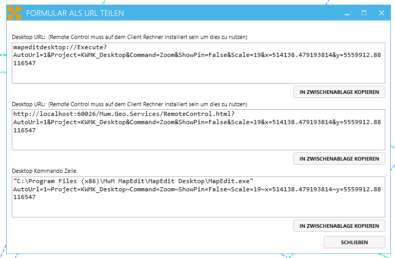 Die Einstellungen der URLs zum Core finden Sie im nächsten Kapitel "MapEdit Core Admin".