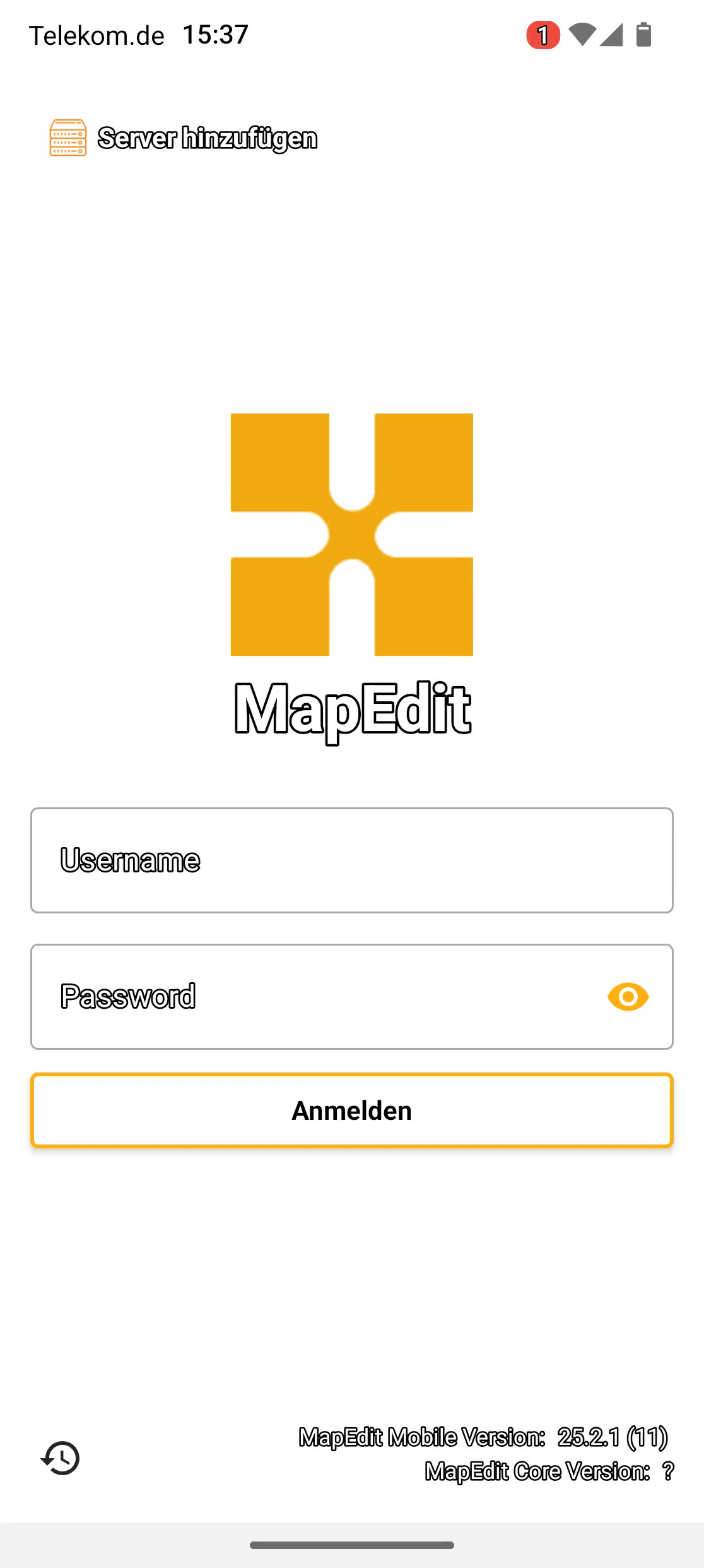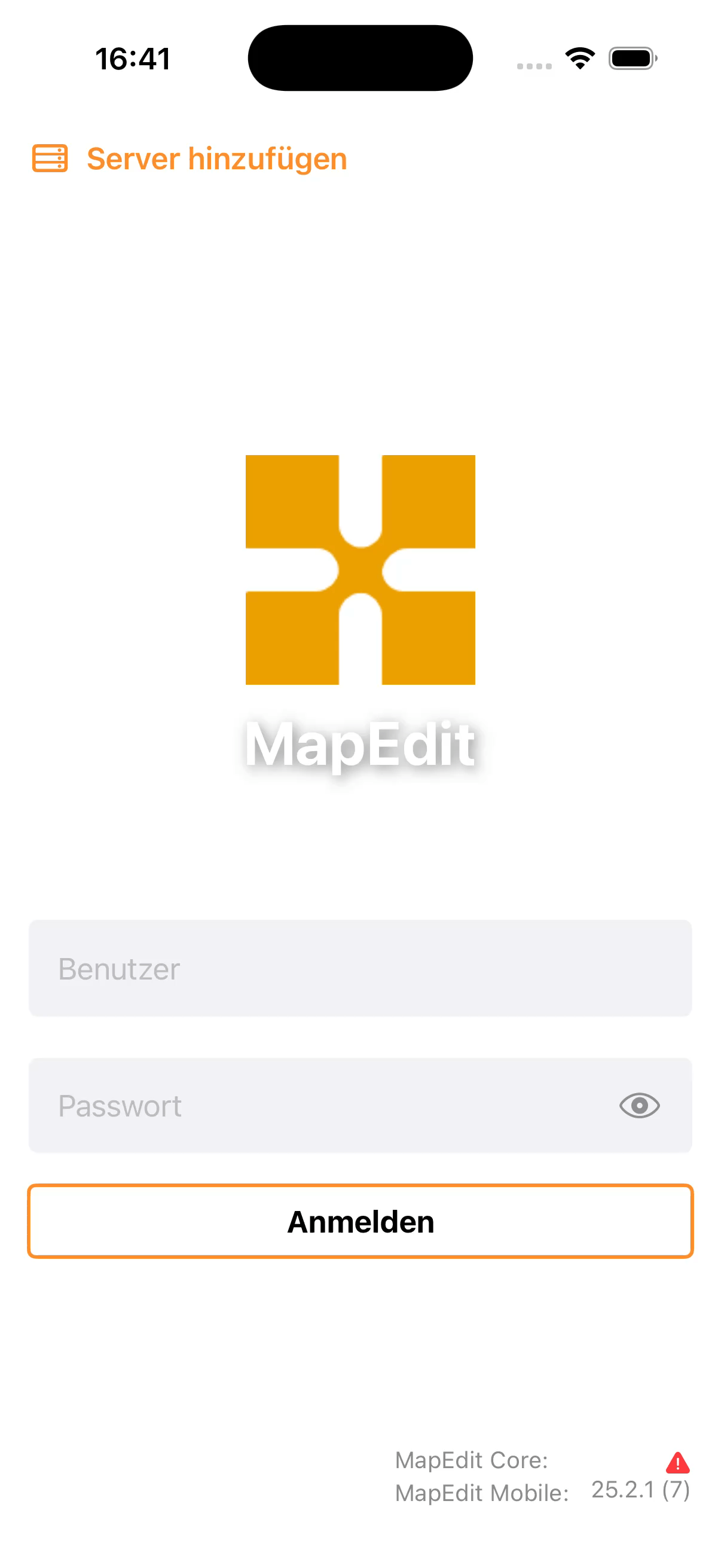 Bei den nativen MapEdit Mobile Apps muss die Adresse jedoch konfiguriert werden. Hierzu muss im Login-Screen auf Server hinzufügen getippt werden. Anschließend öffnet sich ein Dialog, in dem eine URL eingetragen werden kann; diese müssen Sie bei Ihrem Administrator erfragen.