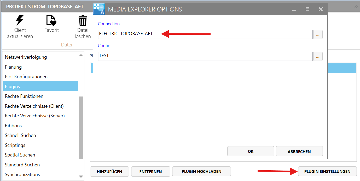 Wählen Sie unter "Plugin Einstellungen" die Datenbankverbindung aus die der Strom Explorer verwenden soll.